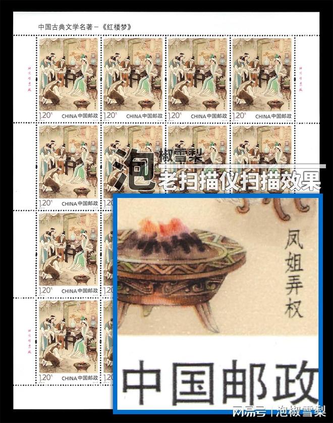 当时第一套扫描的邮票为2016年的《红楼梦》邮票大版,所设置分辨率为1200dpi,实际效果如下图所示。