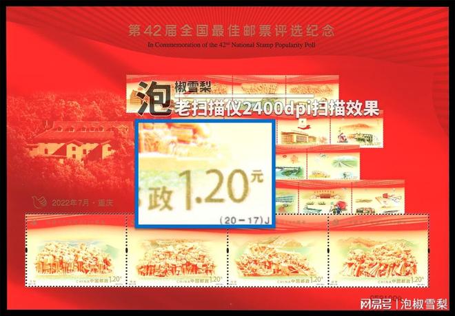 在尺寸较小的单枚邮票上,泡椒雪梨曾盲目追求高分辨率,致使一张邮票的大小就超过了40mb,后经过严格对比,9600dpi下的邮票虽然能放的更大,但印刷细节上会有模糊感,反不及较小分辨率下的效果。